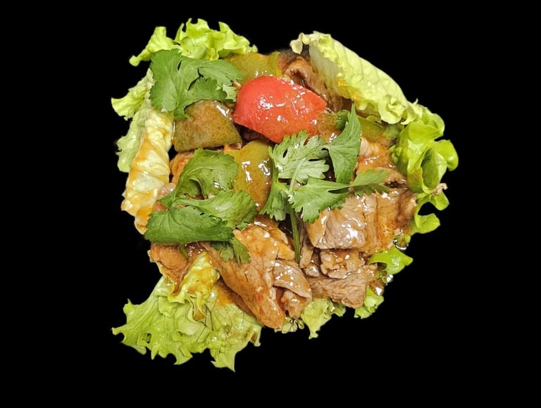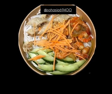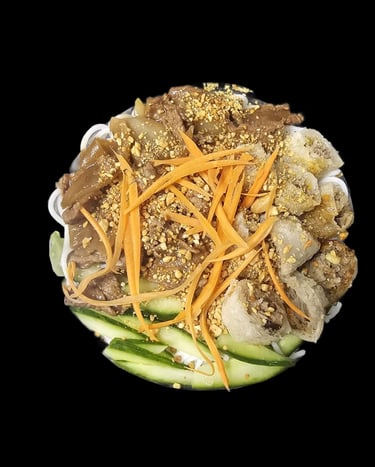Nouilles de riz fines dans un bouillon de bœuf, servies avec un mélange de légumes de saison. Un plat chaud, savoureux et réconfortant.