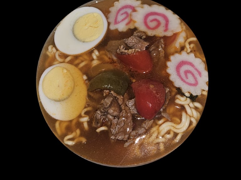 Ramen piquant, préparé avec des nouilles aux œufs dans un bouillon dynamique, légé ou épicé, accompagné d’une viande tendre, de quelques tranches de naruto, d’un œuf et d’algue. Un bol riche en saveurs et en caractère.